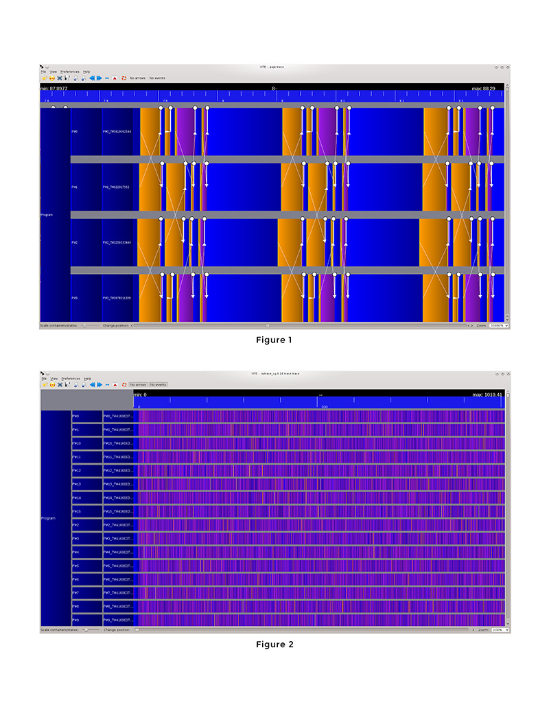 Le développement d’applications parallèles exploitant efficacement un supercalculateur est toutefois une tâche compliquée. Ainsi, si l’on répartit les calculs sur 4 machines, il arrive fréquemment que le temps d’exécution ne soit pas divisé par 4. Cela est généralement dû à des phases de synchronisation entre les machines : lorsqu’une machine a besoin d’un résultat calculé par une autre machine, un échange de messages passant par le réseau est nécessaire. Il est donc fréquent que le développeur d’applications doive analyser l’exécution de son programme afin de trouver l’origine du problème de performance. Pour cela, il peut utiliser des outils tels qu’EZTrace (Trahay, 2011). Ce type d’outils permet d’exécuter une application et d’en capturer les événements importants (phases de calcul, communications réseau, etc.) afin de générer des traces d’exécution. Ces traces peuvent ensuite être visualisées par le développeur afin qu’il puisse trouver la source du problème de performance. […]