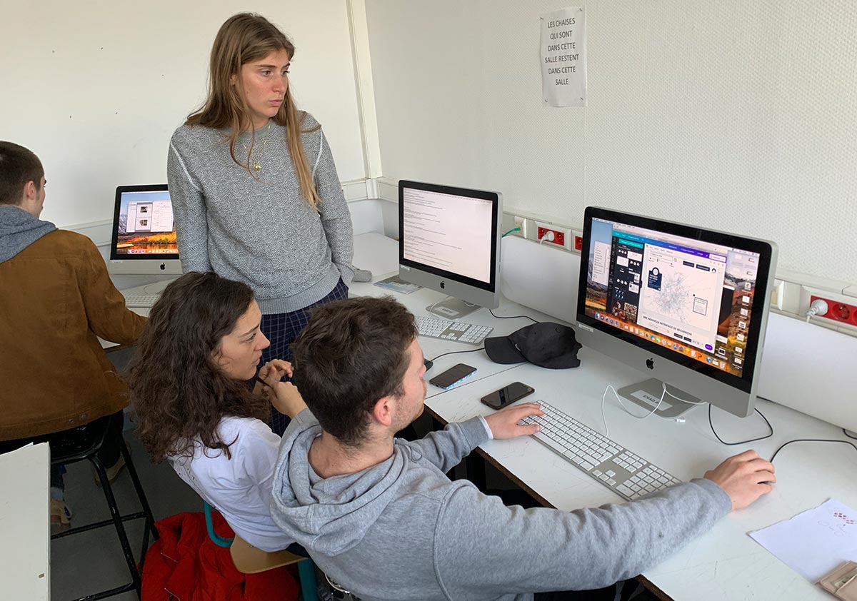 Durant le projet, chaque groupe a travaillé une problématique ; confronté ses idées à de nombreux professionnels des domaines du design, de l’architecture, de la philosophie, du management, de l’ingénierie numérique, de la data visualisation ; exploré leur terrain avec les outils de l’anthropologie ; prototypé des interfaces et outils pour les soumettre aux tests d’usages ; réitéré ces phases pour développer des propositions digitales innovantes et inventives.