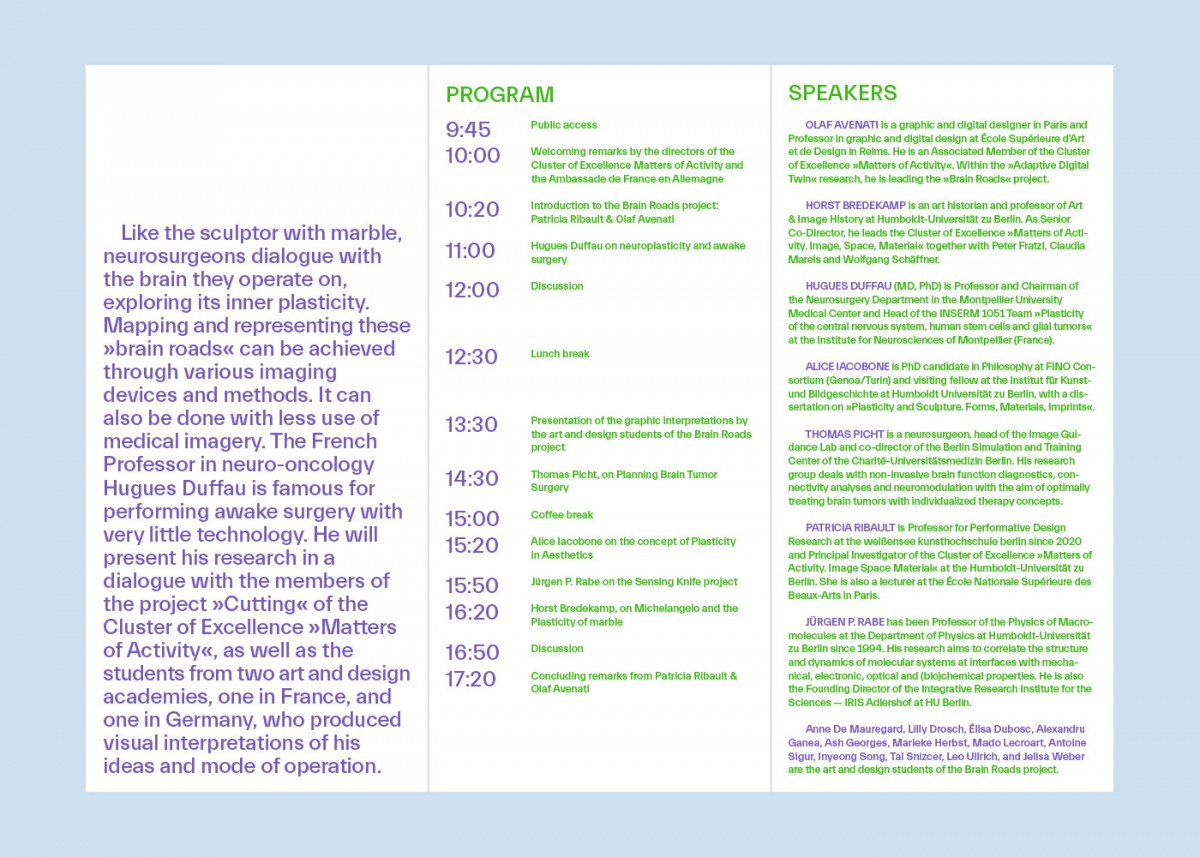 Le projet Brain Roads a reçu en 2023 le soutien de l’Ambassade de France à Berlin et du Cluster Matters of Activity - HU Berlin.