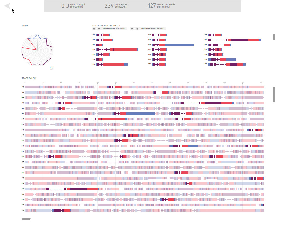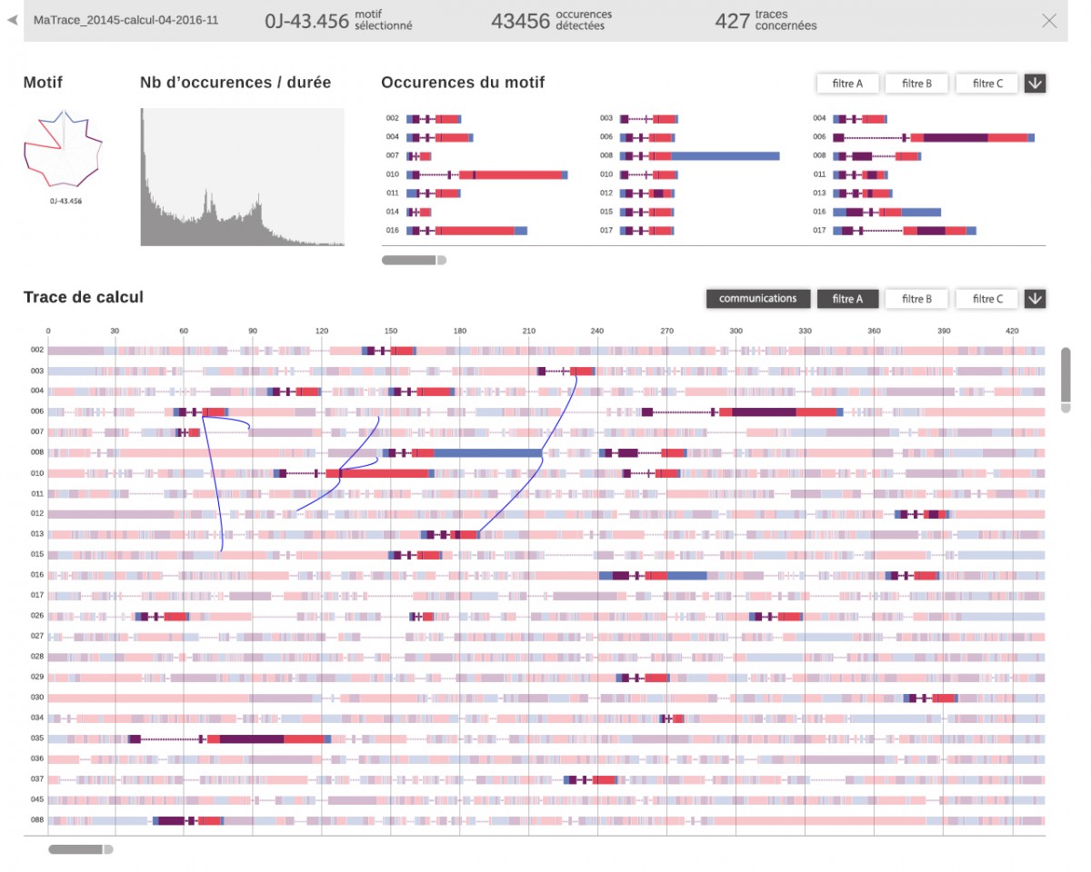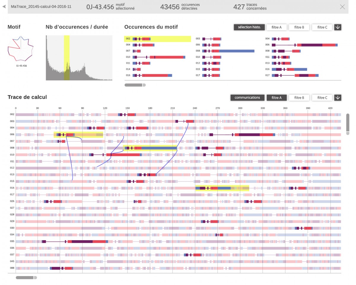 Ces motifs qui se répètent dans la trace sont les signes de régularités dans le déroulement du calcul et sont à ce titre intéressants à identifier et observer : si ces motifs sont optimisables, le calcul général peut alors être nettement plus efficace. Ces motifs ont la particularité d’avoirs des expressions individuelles qui varient en durée et en fréquence. On pourra aussi trouver des motifs à l’intérieur d’autres motifs.