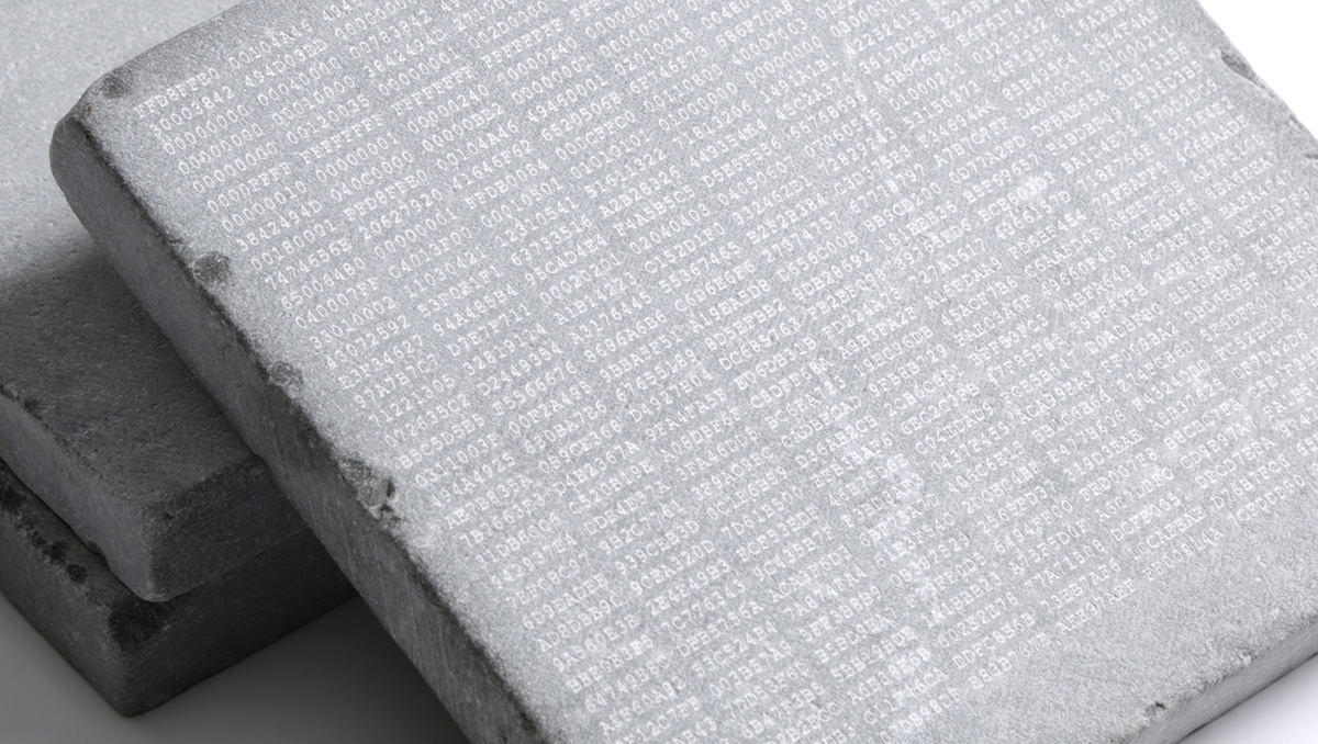 Ce projet tente donc de répondre aux problèmes de la fragilité des supports numériques, en présupposant que le langage numérique peut se transposer sur un support papier. Si toutefois ceux-ci sont pensés dans leurs formes pour optimiser l’espace, la lecture — à la fois humaine et mécanique — et répondre aux problématiques de l’archivage au long terme.