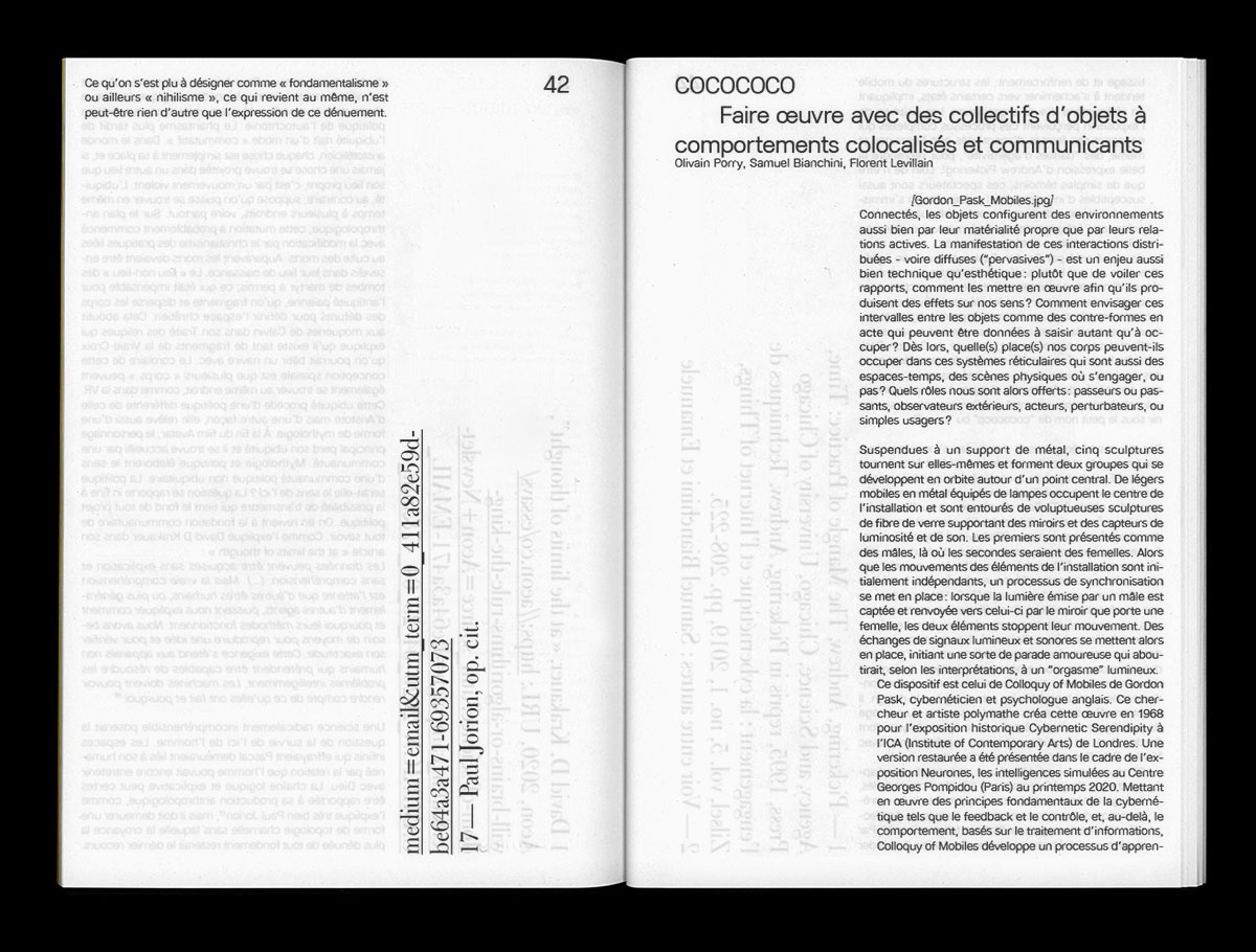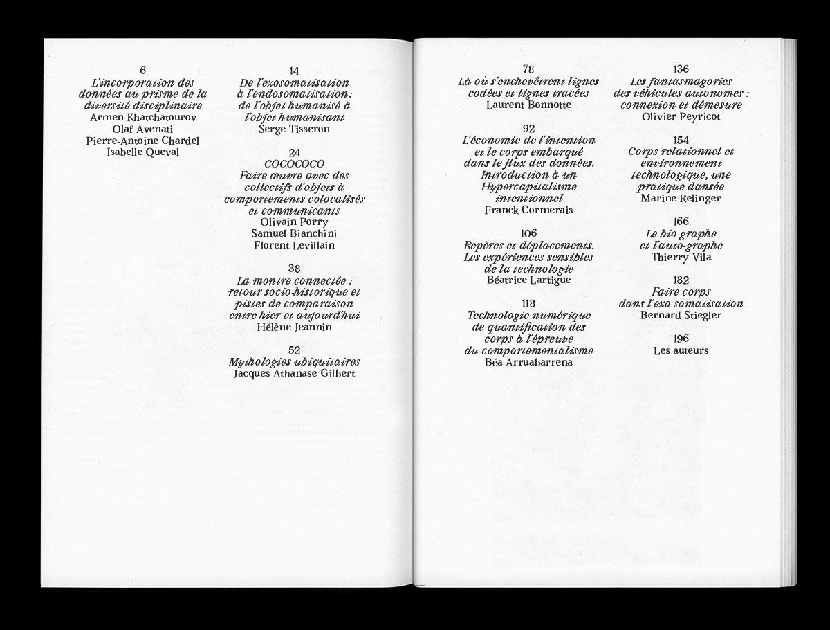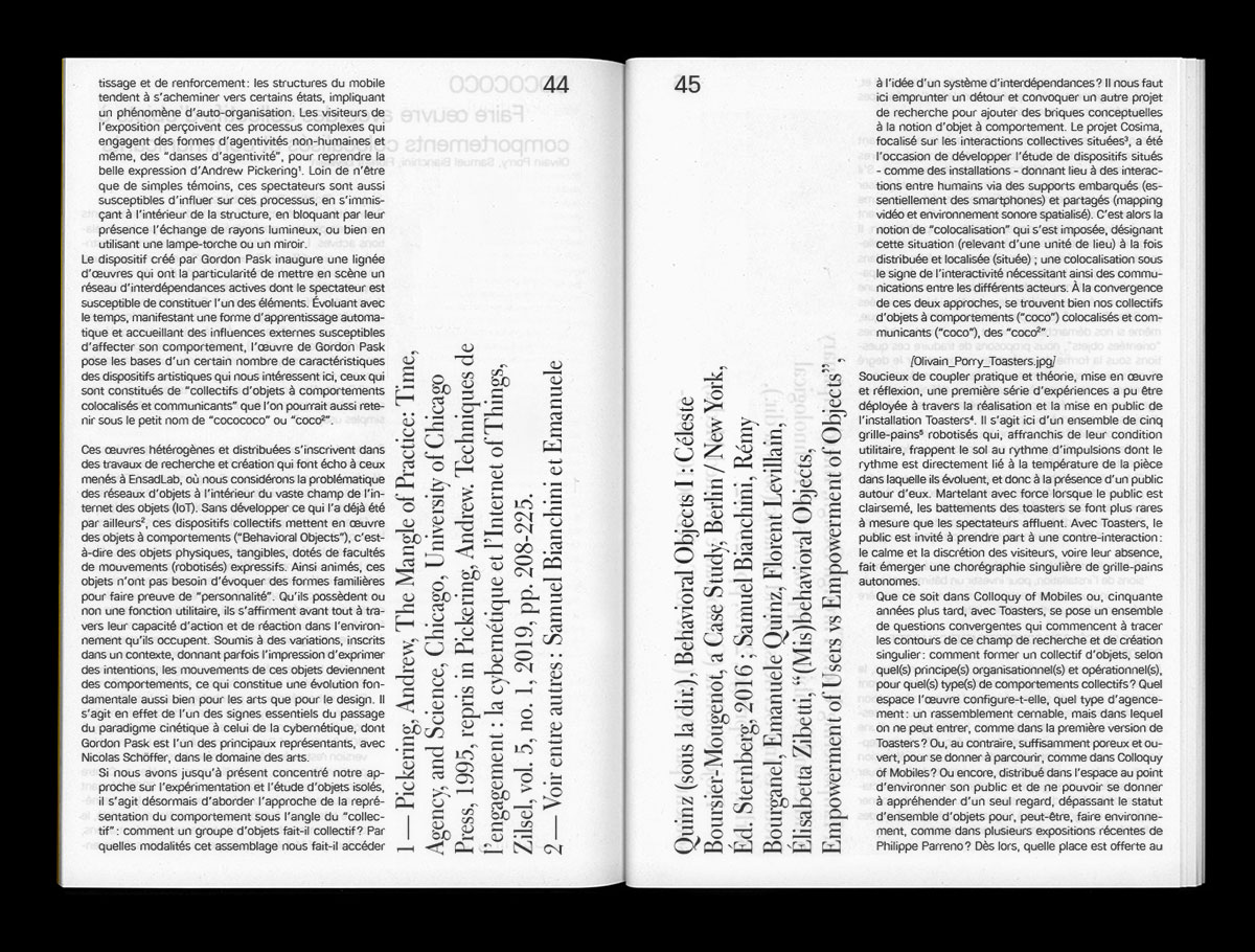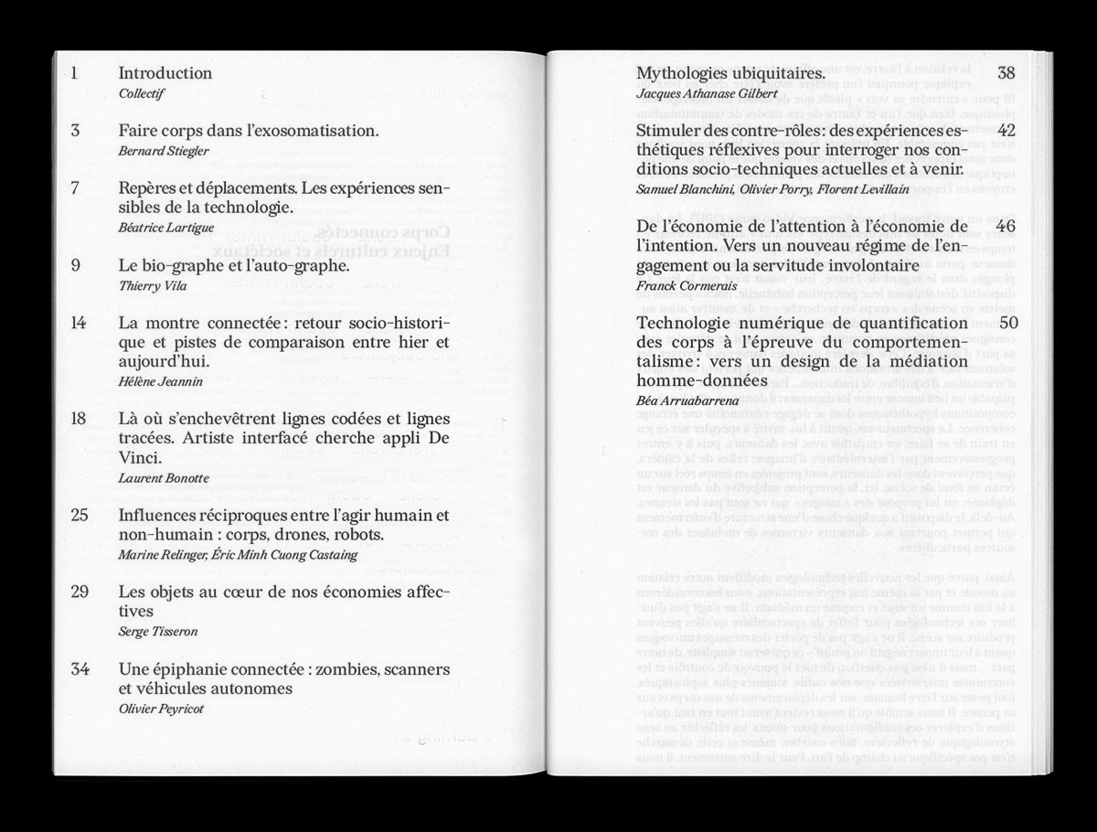La conception du design graphique de l’ouvrage a fait l’objet d’un atelier encadré par Laurent Mészáros et Olaf Avenati accompagné des étudiant·e·s de 4ᵉ années : Guillaume Andres, Amélie Blachère, Charles Dessaint, Grégoire Garmichon, Hoyam Mraizika, Laurie Paolin, Antoine Sigur et Maïa Xavier.
