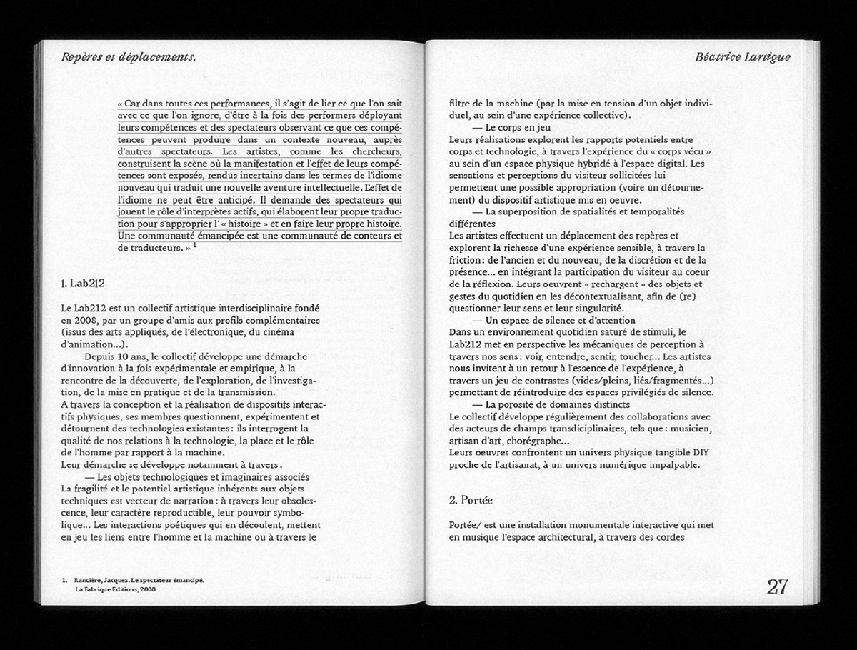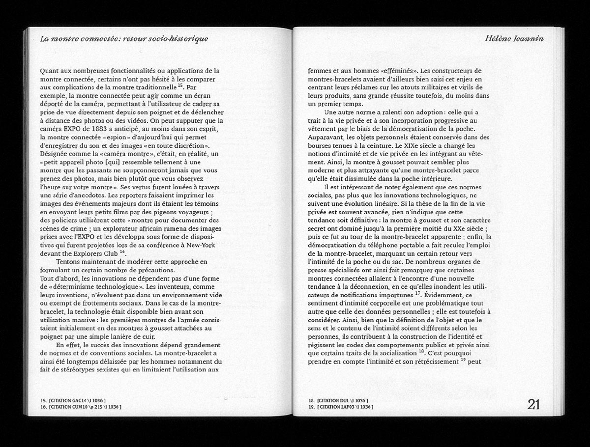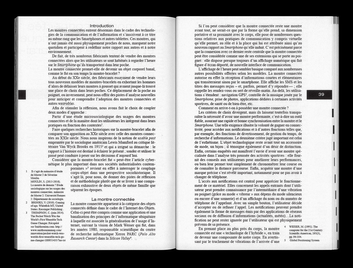 Quatre propositions ont été réalisées par les étudiants organisés en binôme avec pour consignes d’interroger le format conventionnel du livre de presse universitaire. Les paratextes, appels d’image ou l’ajout d’une iconographie qui commente les textes ont parmi les champs explorés par les étudiants.