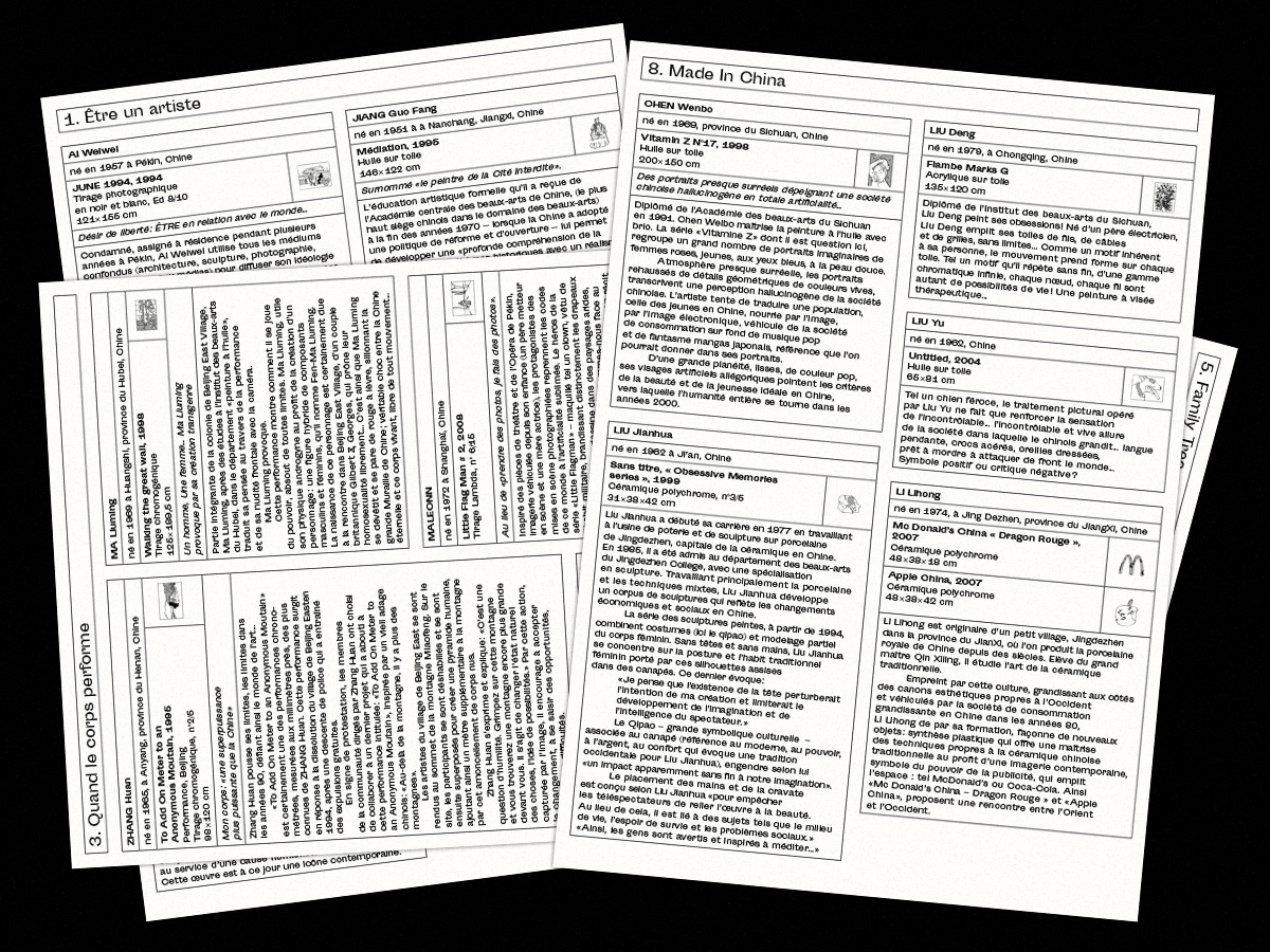 En partenariat avec le musée Saint-Remi, les étudiant.e.s de 4ᵉ année de l’atelier design graphique se sont chargé du design et de la réalisation de l’ensemble du graphisme de l’exposition Couleurs de la Chine contemporaine.