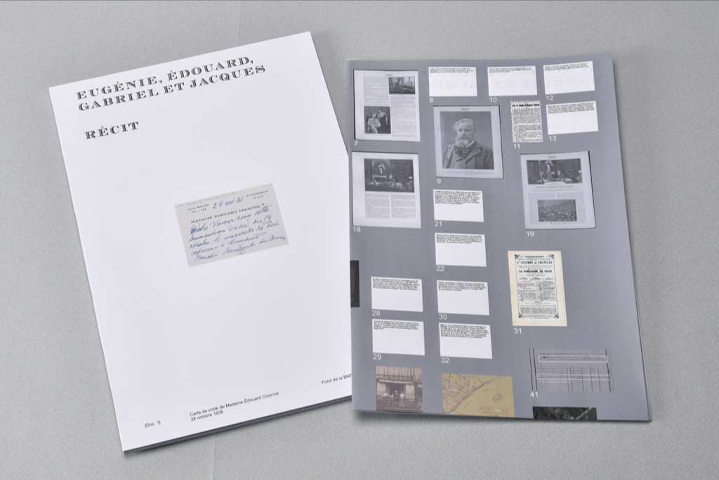Invitant à une flânerie, ce travail interroge la manière dont Madame Édouard Colonne se présente au travers de sa carte de visite et du petit mot qu’elle y a inscrit. C’est en questionnant chaque détail de cet objet (texte et graphisme) que j’ai tenté de comprendre l’histoire qu’il renferme et l’histoire de sa présence dans un fonds d’archives.