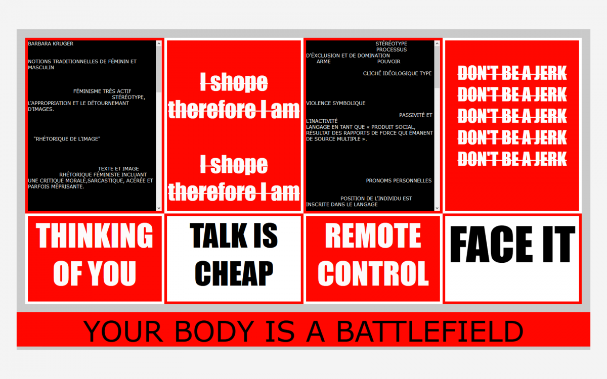 Ci-dessus, webdesign de Alice Auger, d’après un texte de Barbara Kruger.