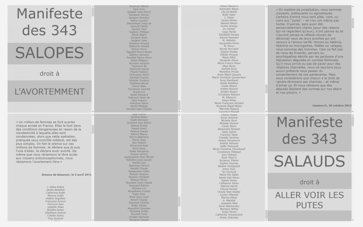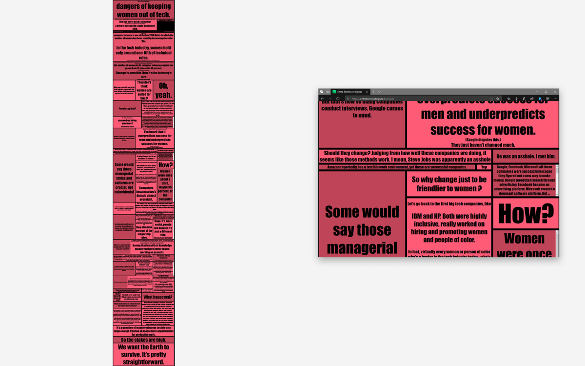 Ci-dessus, webdesign de Alice Cazenave, d’après ces deux manifestes. Ici la fenêtre propose deux colonnes à défilement inversé.