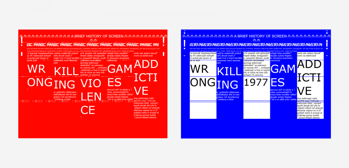 Ci-dessus, webdesign de Léa Gastaldi, d’après le texte A brief history of screen panic, de Blanca Myers.