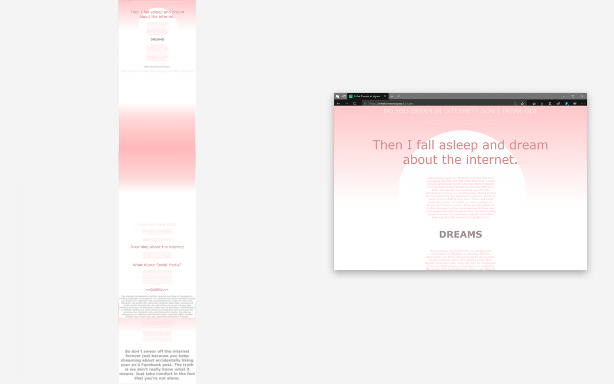 Ci-dessus, webdesign de Manon Scellier, sur un texte Do you dream on Internet, don’t freak out, de Louise Matsakis.