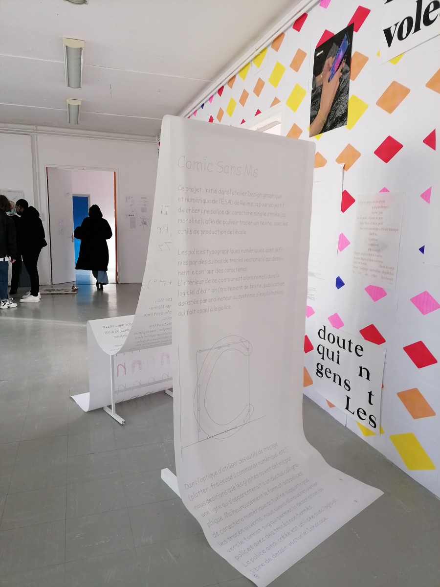 Cette police est si présente dans l’environnement graphique, que cette nouvelle utilisation est également une tentative de réconciliation avec un caractère clivant3, qui divise le public entre experts et amateurs. En déplaçant sa mise en œuvre avec d’autres techniques que l’impression, nous espérons ainsi créer un nouveau rapport esthétique avec cette police malaimée.