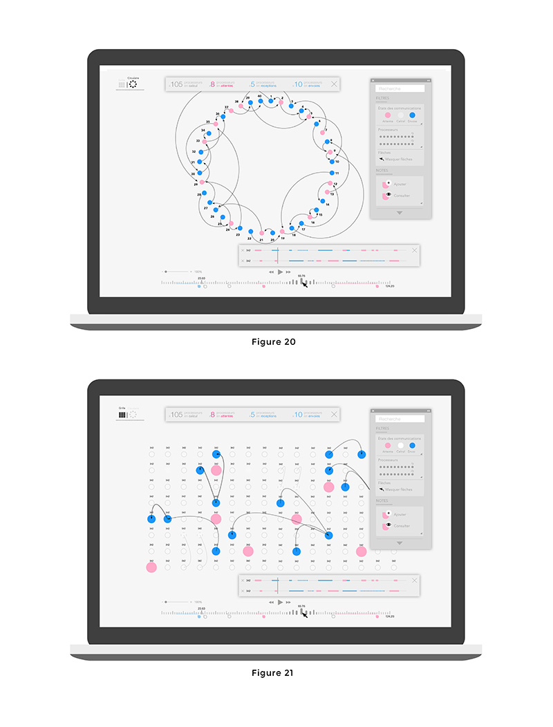– Extrait de l’article « exploration visuelle des traces de calcul haute performance», François Trahay, Eve-Lise Kern, Kévin Zanin, publié dans l’ouvrage Datalogie, éd. Loco, 2016