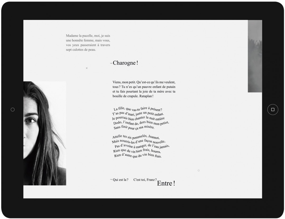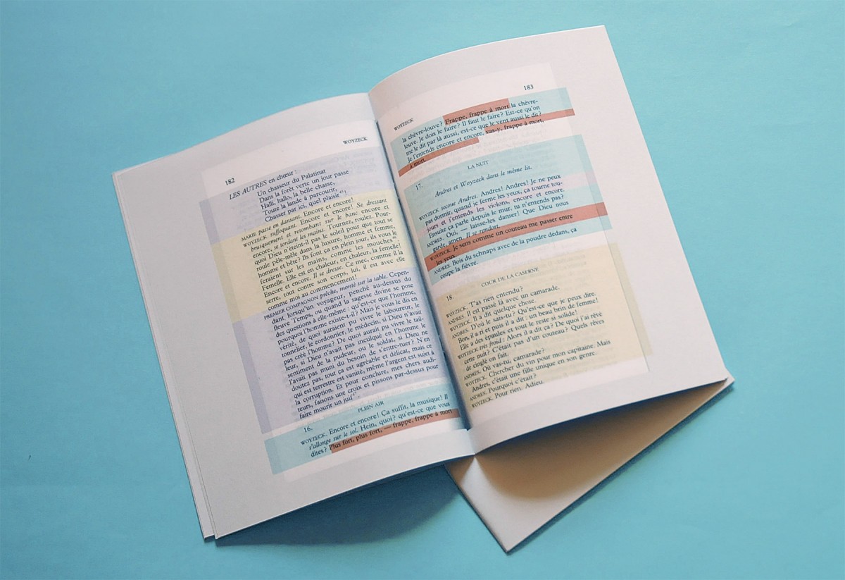 La pièce Woyzeck de Georg Buchner est une œuvre inachevée et composée de trente-et-un fragments dont l’ordre exact reste à ce jour inconnu. Cette originalité prend forme à l’intérieur du livre numérique par une lecture non linéaire.