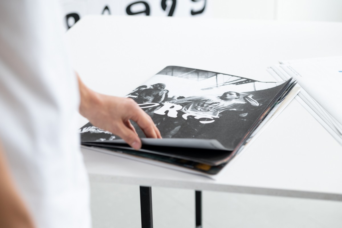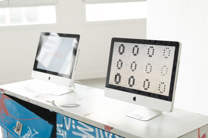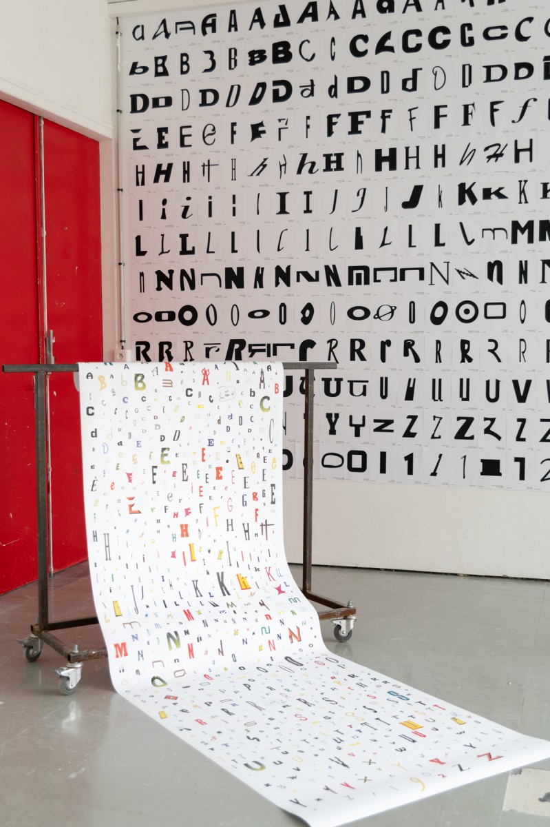 Sample se compose de 500 glyphes distincts et de différentes variantes pour chaque lettre, allant de 2 à 31 alternates sélectionnées de manière aléatoire. La typographie et les objets produits donnent à voir et questionnent le contexte de réappropriation de formes relatif à cette culture et à son époque.