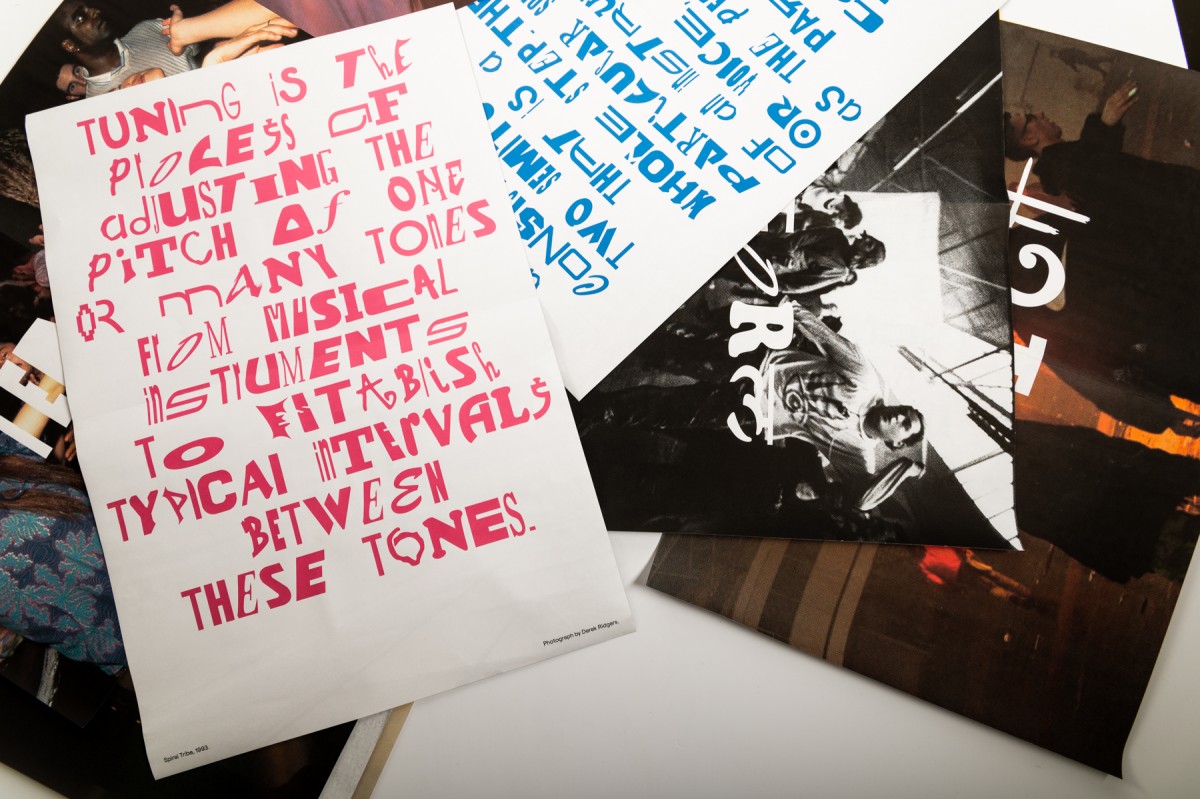 Ces échantillons deviennent une typographie qui, comme un collage ou plutôt un bricolage, forme une compilation de formes non-exhaustives liées à un domaine culturel.