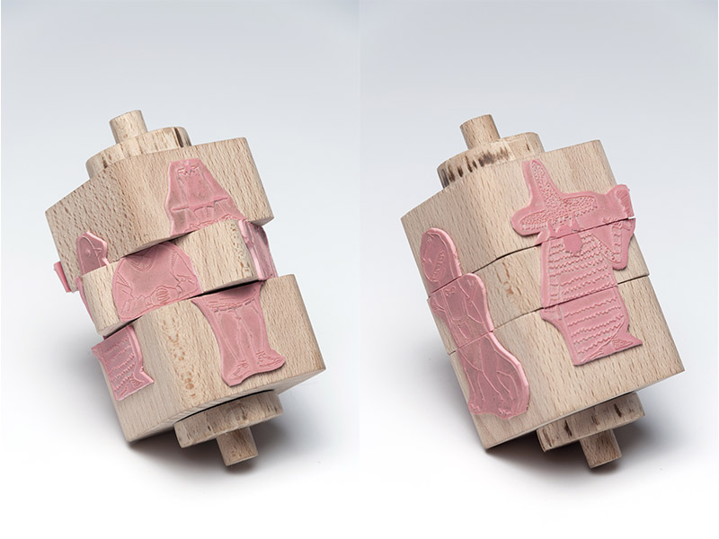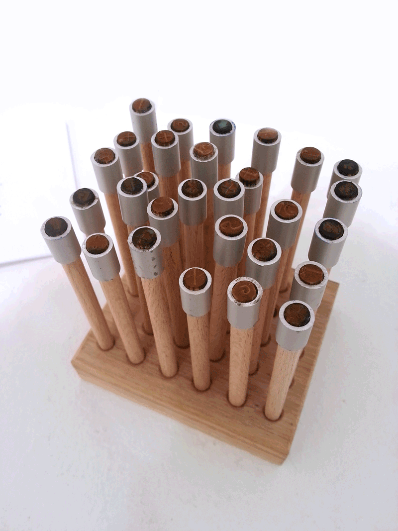 Atelier de recherche autour de l’objet tampon. Les étudiants ont été amenés à questionner l’objet, son ergonomie, le rapport entre le geste et le signe produit, la complexité possible de production grâce au procédé.