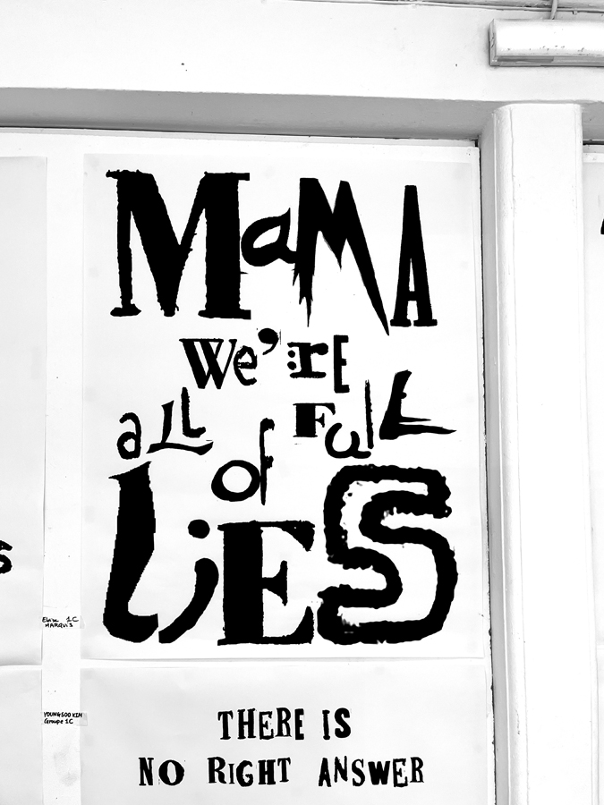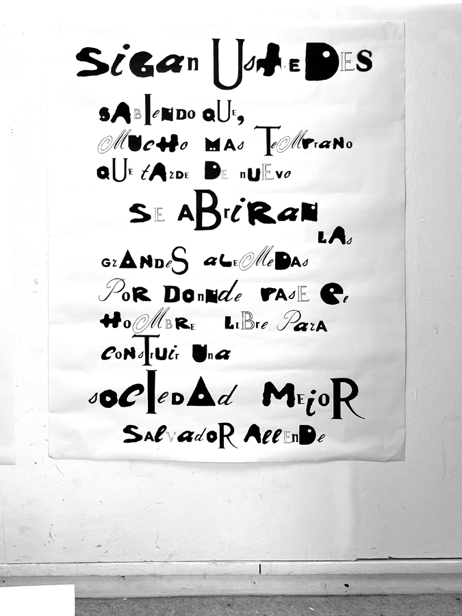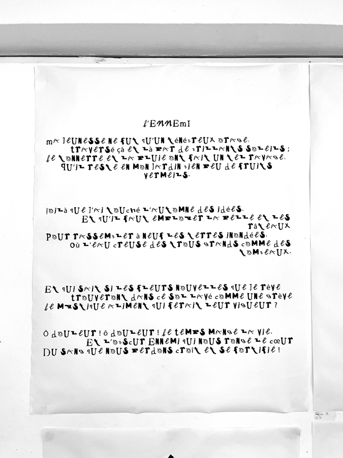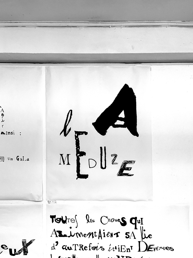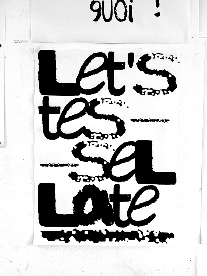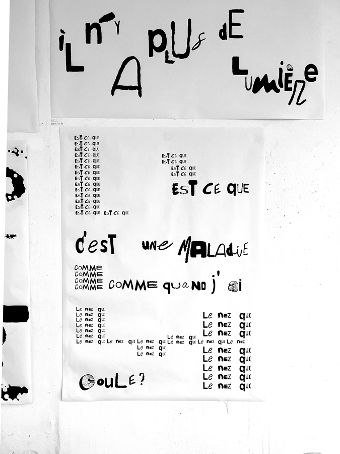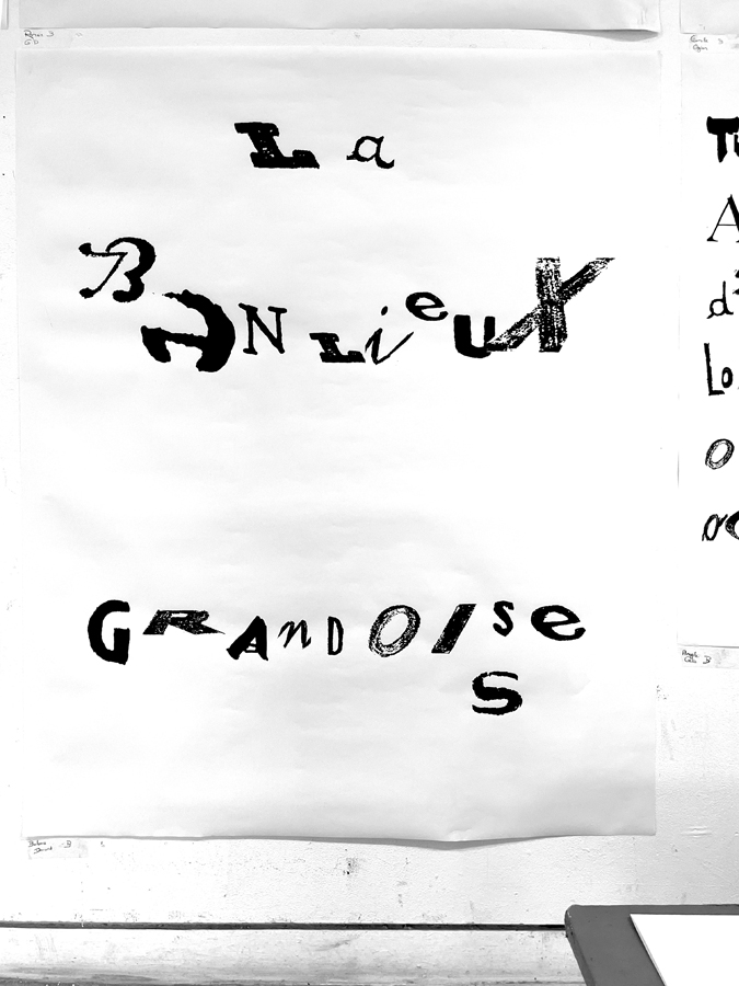 D’une sélection d’objets imprimés de seconde main (du magazine à la pochette vinyle) à l’élaboration d’abécédaires «mélangés» jusqu’à la réécriture de textes, les étudiant·es ont expérimenté par le dessin et la reproduction mécanique l’élaboration de caractères typographiques. Ainsi les caractères composés sur une surface donnée deviennent des textes à lire et à voir.